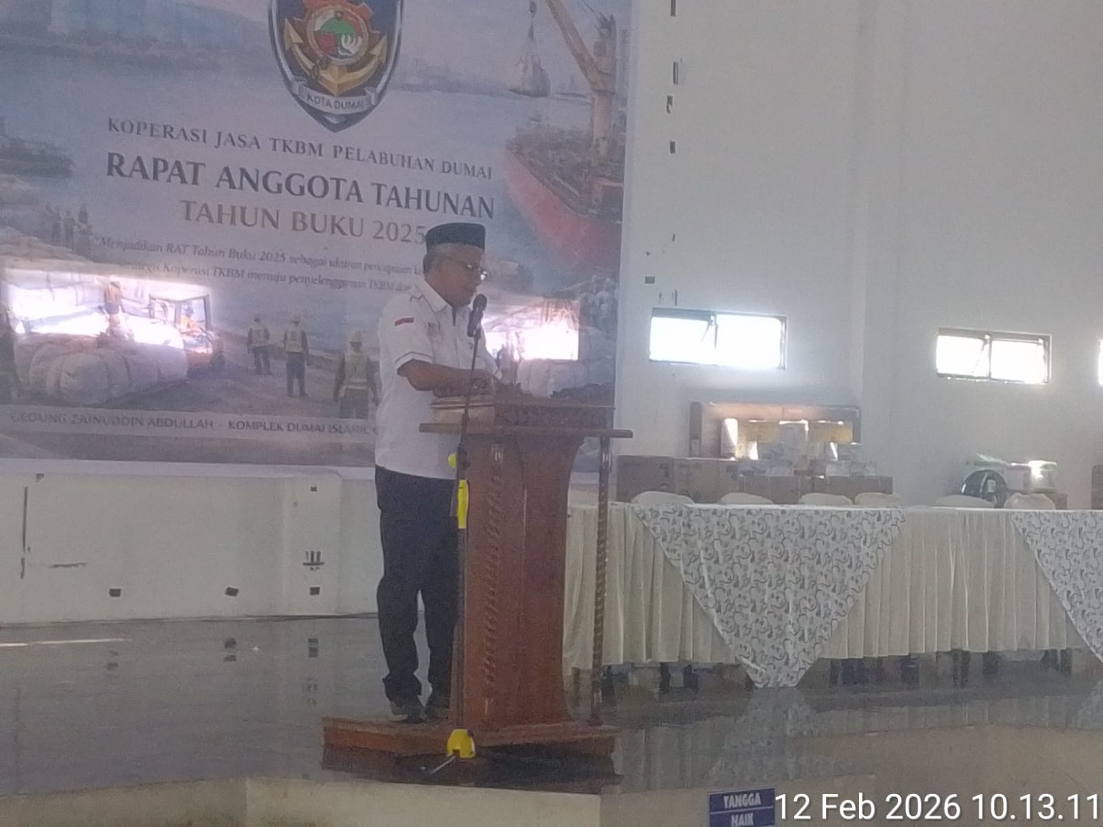 [Dumai] – Tenaga Koprasi Bongkar Muat (TKBM) Kota Dumai melakukan Rapat Anggaran Tahunan (RAT) Tahun 2026 diGedung serba guna di jalan Soebrantas bersebelahan dengan Masjid Islamic Center Kota Dumai.(12/02/2026).