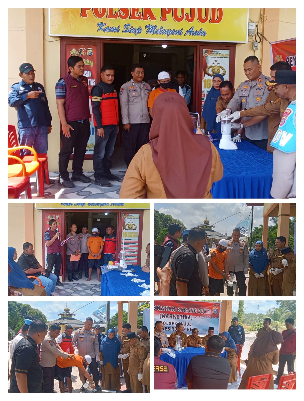 Kapolsek Pujud didampingi Kanit Reskrim Narkoba melaksanakan kegiatan konferensi Pers langsung pemusnahan barang bukti Narkotika dipimpin langsung oleh Kapolsek sebagai fakta bentuk transparansi dan akuntabilitas Polri kepada publik dalam penegakan hukum.